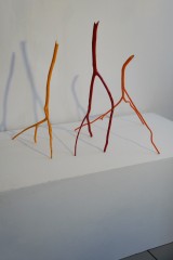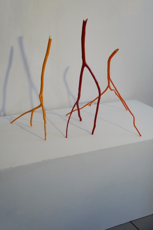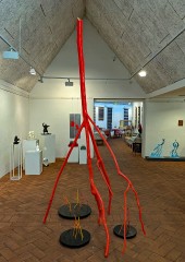 "Uppväxt" Himmelsberga Ölands Museum. Trädande (lönn) och Irrbloss (fjällbjörk). 'Den som är väldigt stark måste också vara väldigt snäll'. Skulptörförbundet 50 år. foto Björn Jäderås. 2025