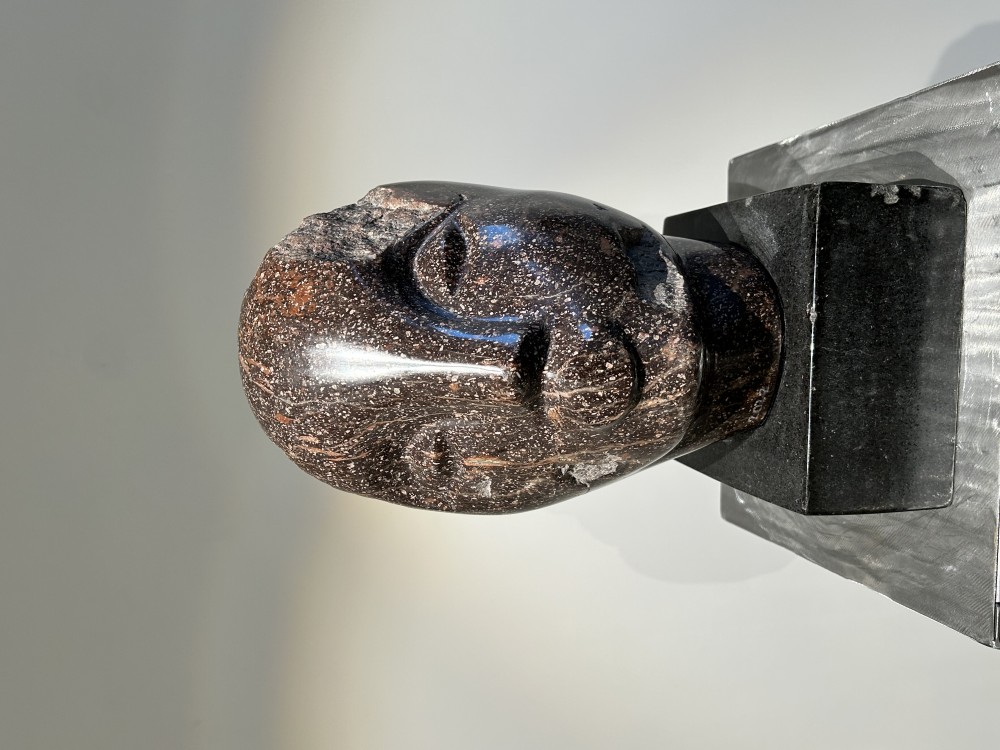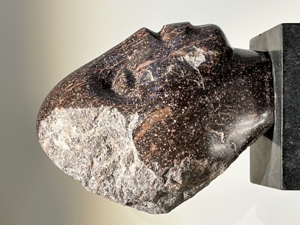 När jag kommer till Vinterviken, där Yemisi Wilson har sin ateljé, står solen högt och stadens brus känns avlägset. Ett kreativt sorl har i stället spridit sig ut över området och Yemisi står utomhus klädd i skyddsmask med slipmaskinen redo. Väl inne i ateljén dricker vi kaffe och pratar om en kommande utställning. Och om sten. Yemisis kunskap är djuplodad och hon delar gärna med sig av den. Ateljén myllrar av gestalter i allt från gul marmor från Sienna till sandsten och grå granit. Skalan rör sig mellan miniatyr och monumental. Yemisis skulpturer är figurativa; det vilar ofta en naturalistisk precision i verken – detta är extra tydligt i hennes djurporträtt. Här finns en uppenbar koppling till det klassiska italienska arvet av bildhuggeri, i vilket hon också är skolad. Hon anser sig ha svårt att arbeta efter konceptuella idéer och undviker att besudla konsten med teoretiska ramverk. I sitt arbete med människoporträtt i porfyr övergav hon det utpräglat figurativa och gick i stället i dialog med abstraktion. Porfyrens förutsättningar är helt andra än till exempel marmorns, där mjukheten bjuder in till lager av lekfullhet i linjerna, i rummen mellan det konvexa och konkava. Porfyr är fragilt och samtidig otroligt hårt – den hårdaste stenen Yemisi arbetat i. Det visade sig snabbt att mejseln inte kunde användas skulpturalt, hon fick i stället förlita sig på grövre verktyg och således hitta nya ingångar in i materialet. Invanda tillvägagångsätt fick underkasta sig det verktygen bemästrade. Yemisis styrka ligger i just detta: hon låter fascinationen och nyfikenheten få företräde framför frustrationen och rädslan för det outforskade.