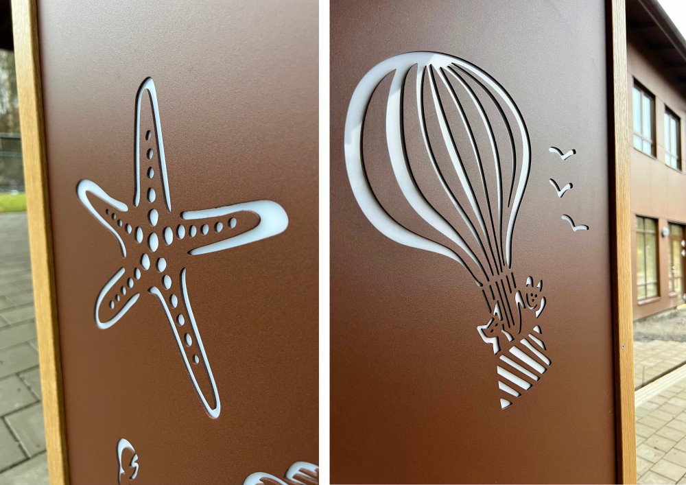 Material Aluminiumplåt, trä, ledbelysning