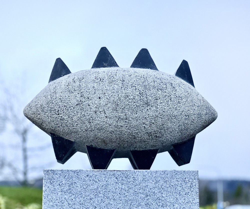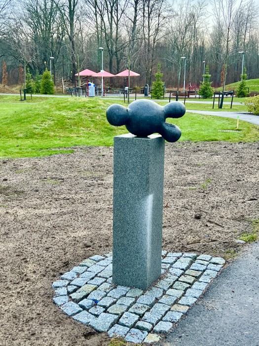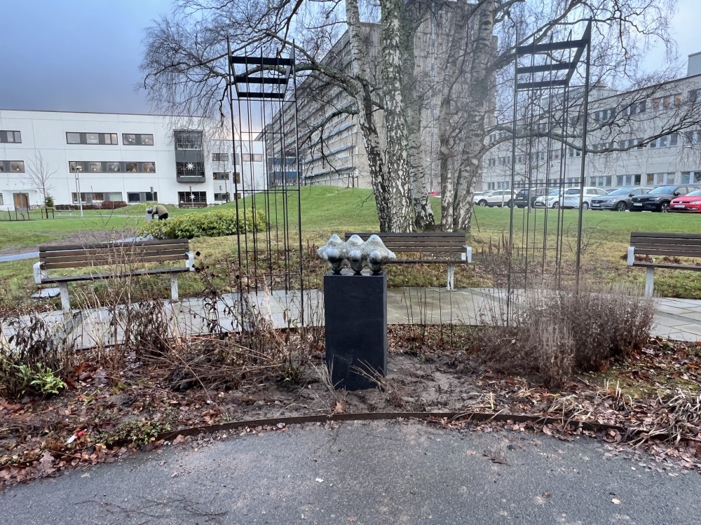 Vid sidan om sjukhusets huvudentré ligger den cirkelformade Lövängsparken med en fontän i mitten. Här står fyra skulpturer i sten på olika platser. Titeln Livsformer innefattar fyra skulpturer i svart granit på stensocklar; Molekyl, Havsdjur, Frö och Trillingen. Dessa livsformer är inspirerade av naturens organiska former och små organismer som är viktiga för vår livsmiljö.