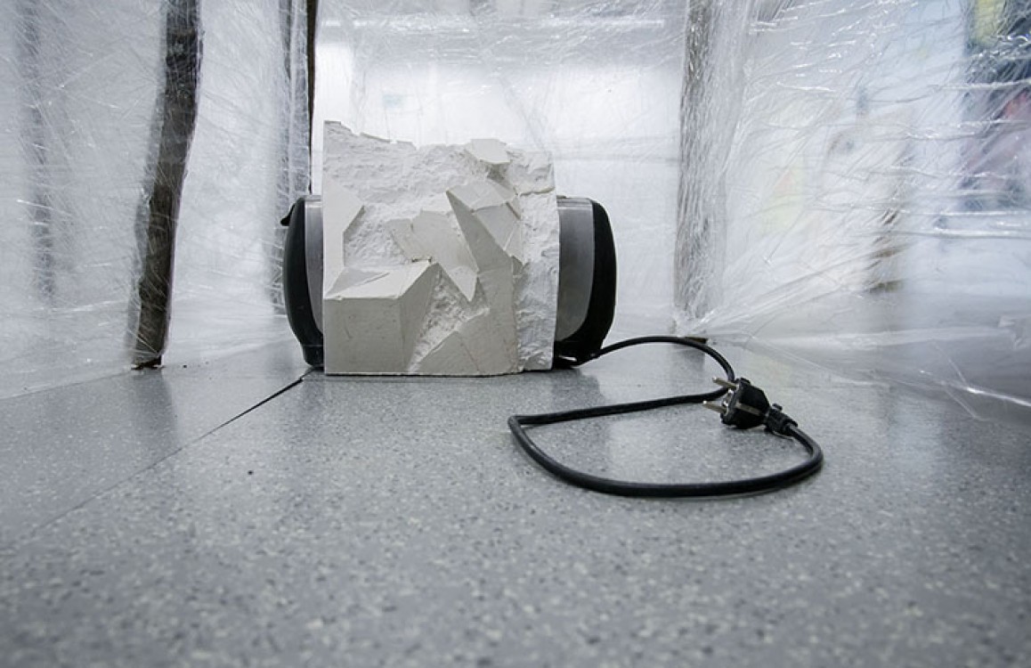 Betongskulptur med Teckningar. (detalj) Bläckis vid Walden