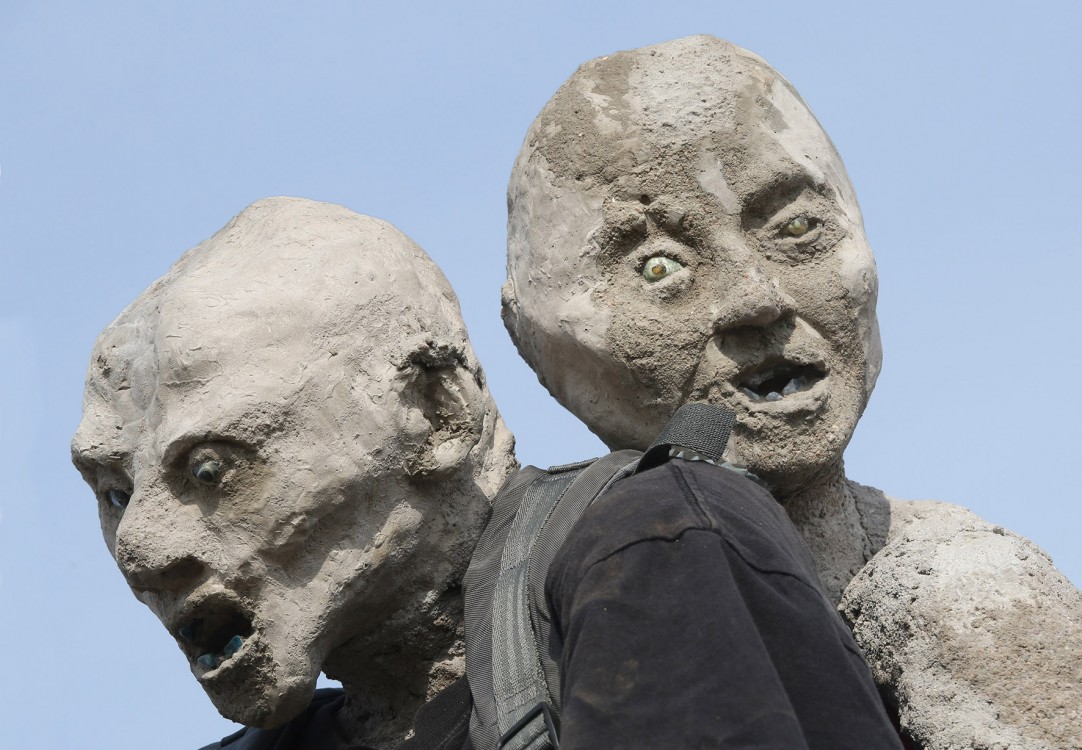 "Allt är bra" Barn som bär på en vuxen. Foto: Ahmed Alalousi