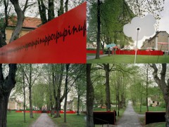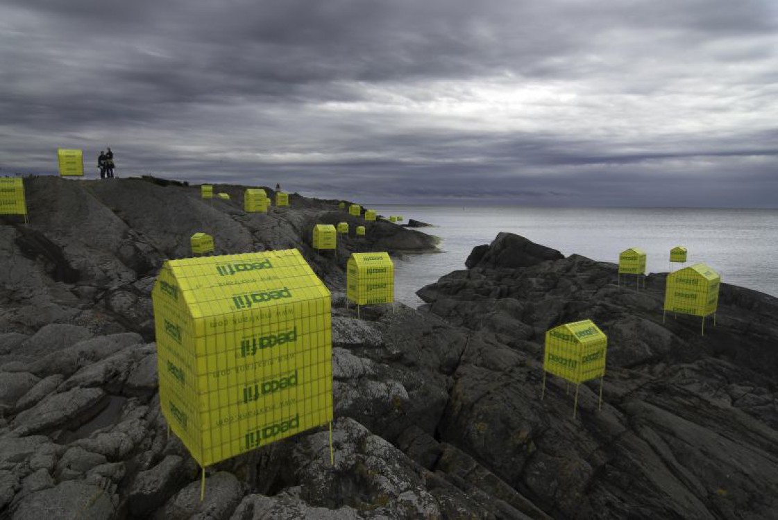 De Gula i Ogesta - installation i Ösmo, Nynäshamn från okt 08 - okt 09 i egen regi. Teknik: svetsat stålnät med PVC folie