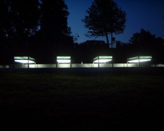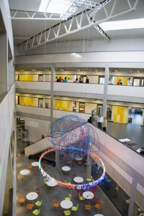 Vi är - Utsmyckning Aranäs gymnasium, Kungsbacka. Best. Statens Konstråd 2006. Datorstyrd Mobil samt neon och nystan i pvc + stål