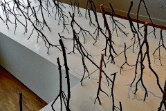 "Uppväxt" Himmelsberga Ölands Museum. Trädande (lönn) och Irrbloss (fjällbjörk). 'Den som är väldigt stark måste också vara väldigt snäll'. Skulptörförbundet 50 år. foto Björn Jäderås. 2025