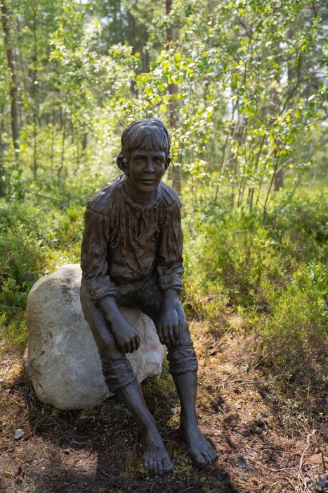 Min gestaltning är placerad nära Dikarbacken, den gård där Mats var anställd som gruvdräng. Jag ville skapa ett levande porträtt av en ung Mats, som vi kan relatera till och känna samhörighet med. Figuren är modellerad efter skisser på Mats som gjordes när han togs upp ur gruvan samt efter nu levande personer från Mats släkt.